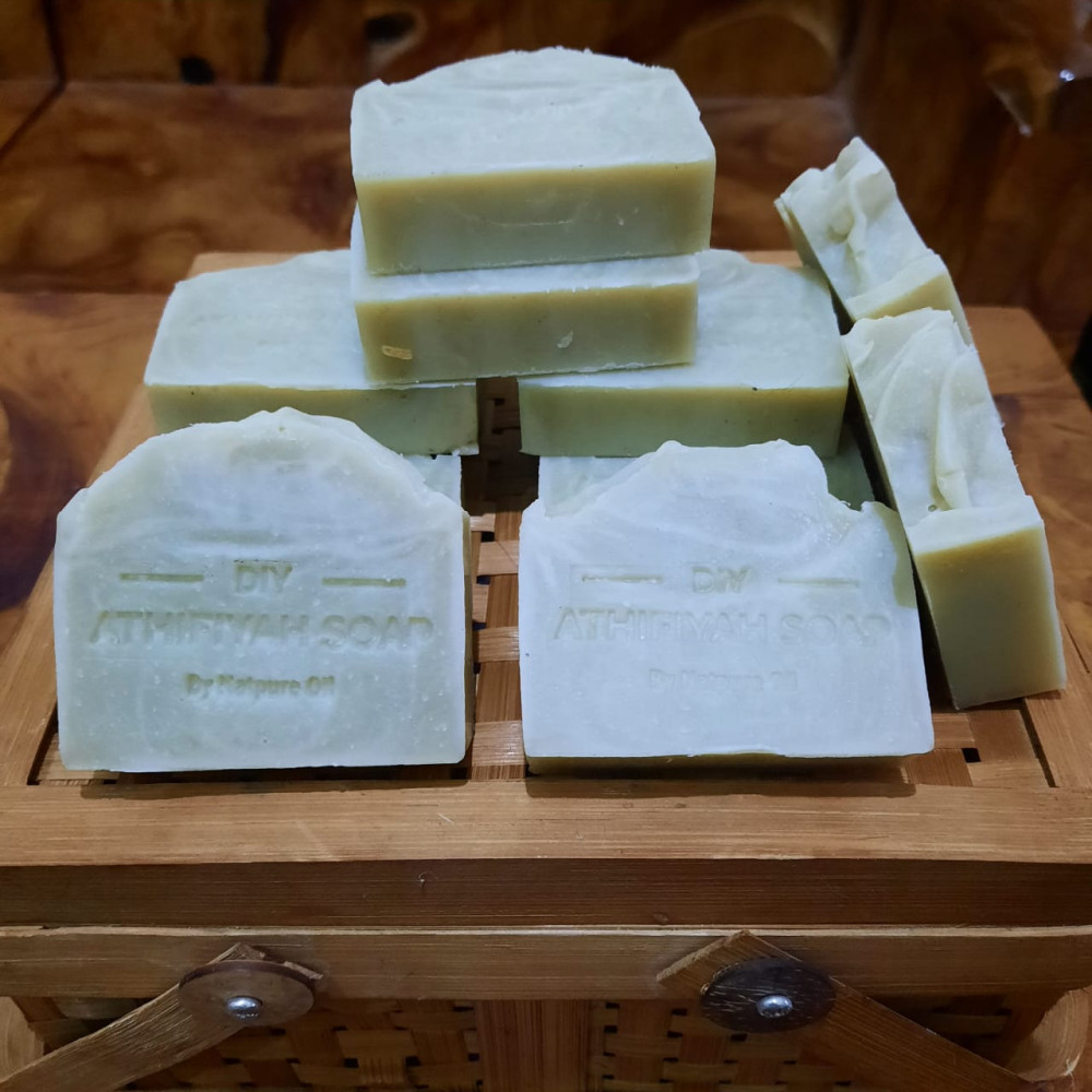 Athifiyah Soap hadir dari kecintaan pada alam dan keinginan menciptakan solusi untuk kesehatan kulit, terutama bagi mereka yang rentan alergi dengan sabun komersial. Sejak tahun 2011, ketertarikan untuk membuat sabun natural ini tumbuh ketika melihat banyak orang, termasuk keluarga dan teman, mengalami masalah kulit yang sensitif. Athifiyah Soap dirancang tidak hanya untuk membersihkan kulit, tetapi juga memberi nutrisi dari bahan-bahan alami yang kaya manfaat. Misalnya, biji kopi dan coklat yang memberikan eksfoliasi lembut, kunyit dan temulawak yang membantu mencerahkan serta merawat kulit, daun kelor dan bidara yang dikenal karena efek penyembuhannya, hingga kulit buah manggis dengan kandungan antioksidan yang tinggi. Kelebihan dari Athifiyah Soap adalah kebebasan untuk berkreasi dalam hal bentuk, warna, dan aroma. Setiap sabun adalah karya seni kecil yang unik, dengan warna-warna alami dari bahan-bahan yang digunakan. Karena tampilannya yang menarik dan manfaatnya yang banyak, sabun ini juga cocok sebagai suvenir, hadiah ulang tahun, hadiah idul fitri atau oleh-oleh khas, terutama bagi mereka yang mencari produk natural dan sehat untuk kulit. Atau untuk sabun saat umroh dan haji untuk kulit tetap sehat, lembab pada suhu estreem. Bisa custom minyak nabati sesuai jenis kulit.